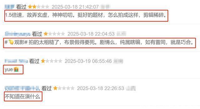 “不知谈在演什么”、“高深莫测,神神叨叨,编著稀碎”、“背景假,拍的糙”等等等等。